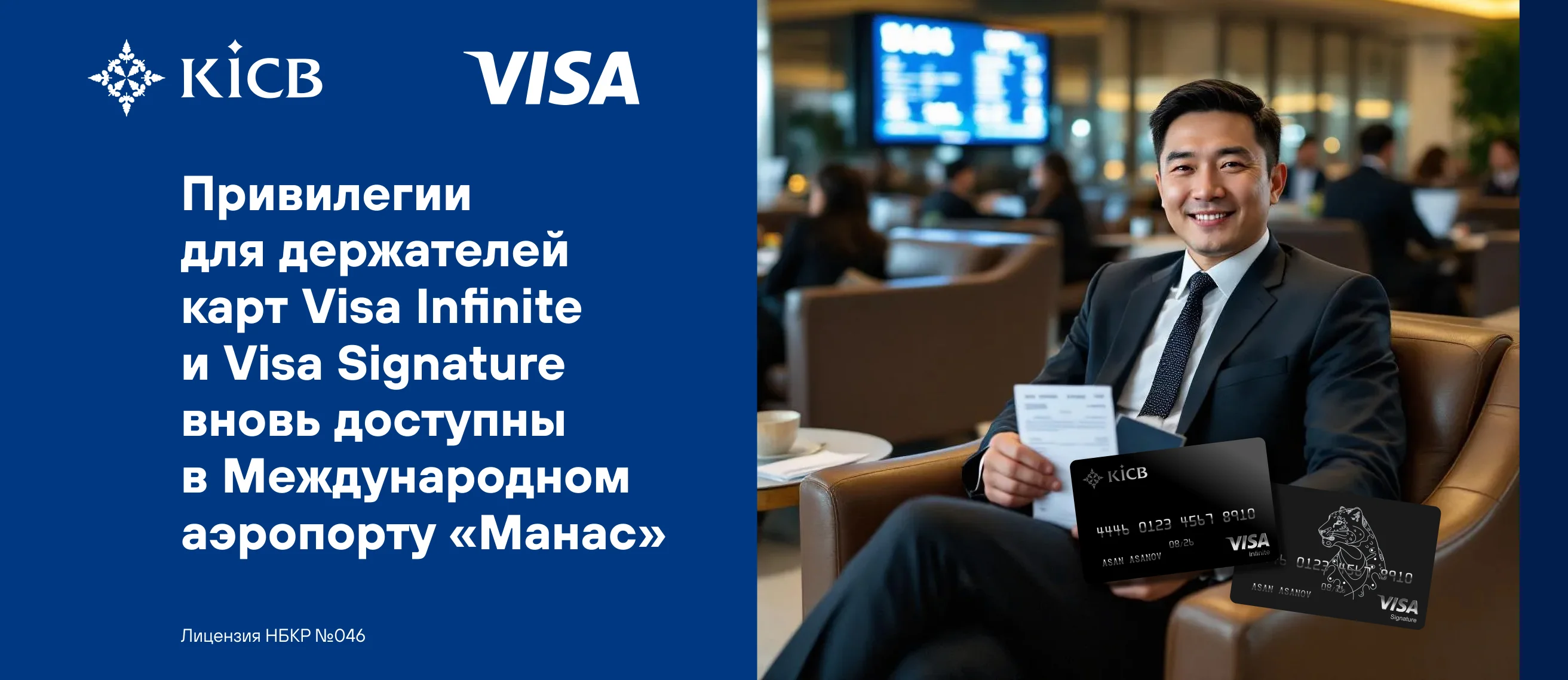 С 13 октября 2025 года в Международном аэропорту «Манас» вновь доступны привилегии для держателей премиальных карт Visa Infinite и Visa Signature!