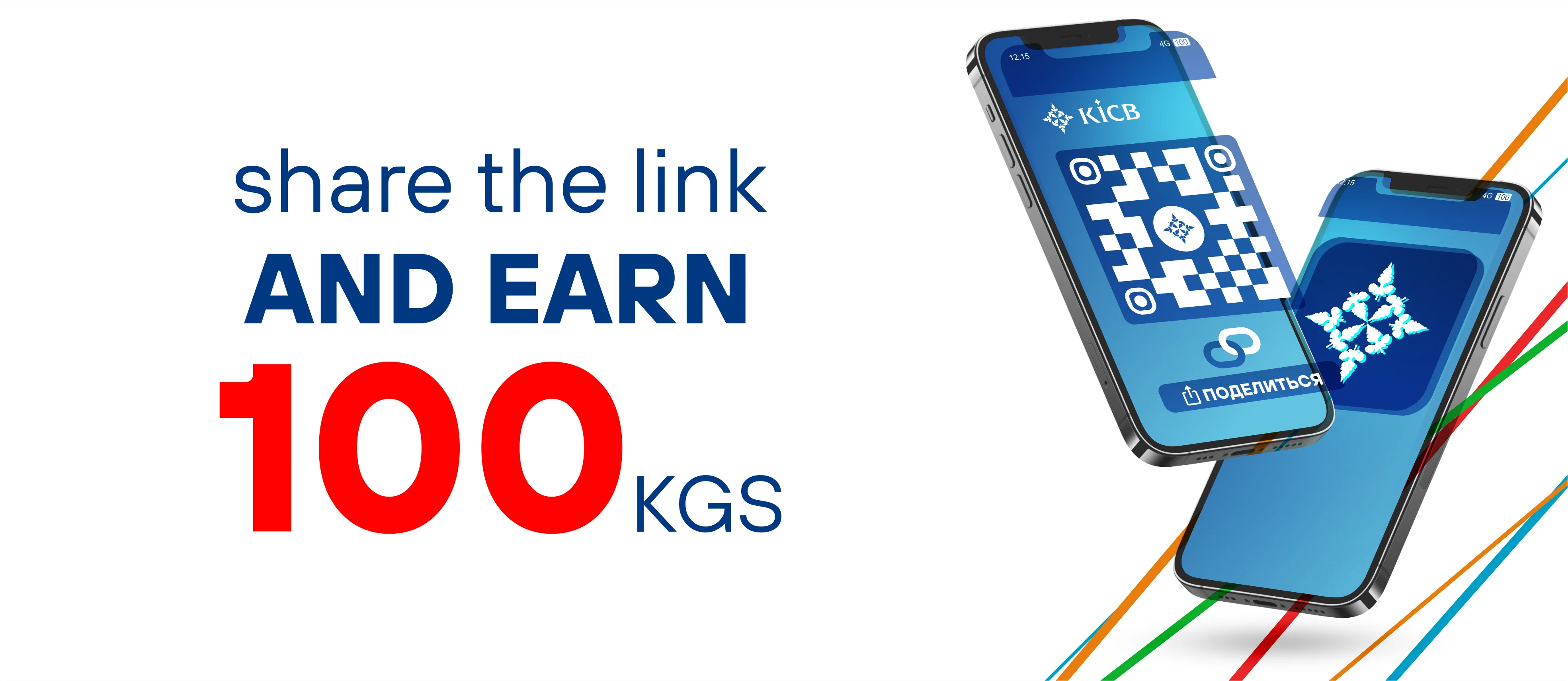 To participate the promotion, simply share your referral link in the KICB mobile app with friends, family, and relatives and receive KGS 100 for each person who downloads the app.