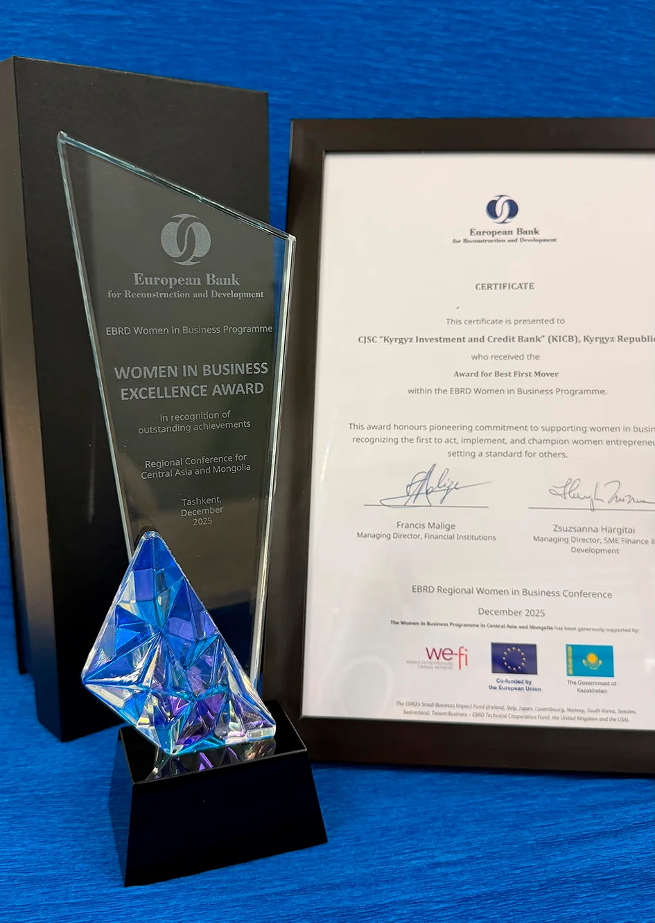 КИКБ Европалык реконструкциялоо жана өнүктүрүү банкынын (ЕРӨБ) Women in Business программасынын алкагында Best First Mover сыйлыгына ээ болду.